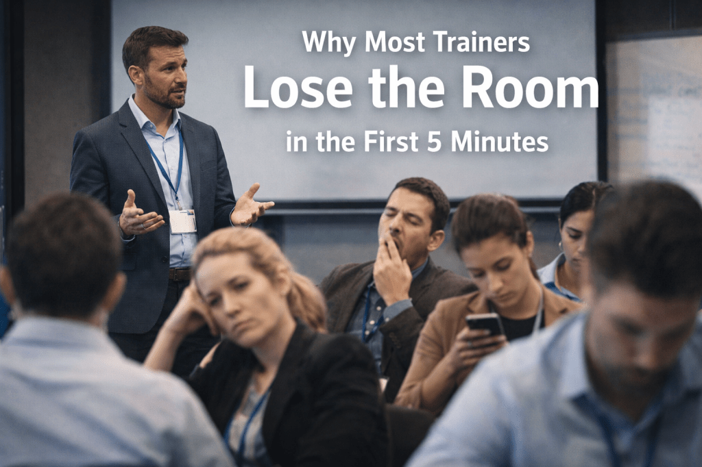 Whether consciously or not, every person in a training room is asking one question as they walk into a room that is about to be taken over by another trainer: “Is this worth my time?” And they answer it fast. Within the first minute or two, they’ve either leaned in or checked out.
